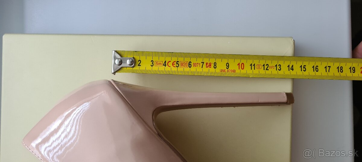 Kožené lodičky - [31.12. 2025]Predám nenosené čierne kožené lodičky (kupované vo Viedni - originál značka Buffalo London) veľkosť 38. Výška podpätku 140mm, výška platformy 30mm. Pôvodná cena 149,-€.