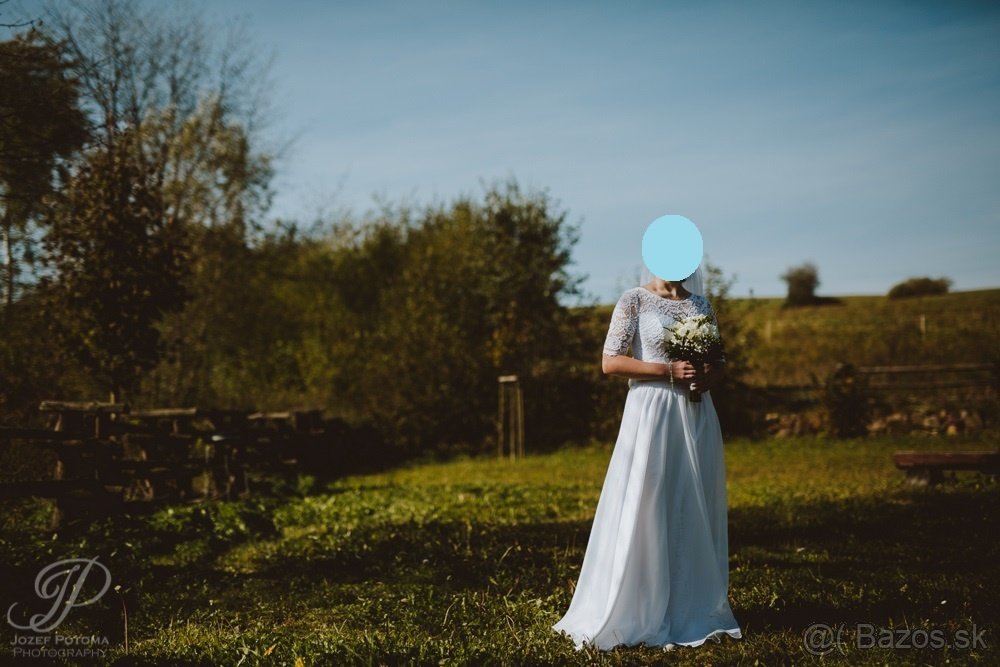 Predám svadobné šaty šité v salóne Natasha Azariy podľa mojich predstáv. Boli nosené len raz. Šaty sú na postavu výšky 170 cm + opätok 6 cm. Závoj je v cene, šaty sú bez kruhu. Profesionálne vyčistené v čistiarni. Možnosť doručenia na trase ML, HE, VT, SP, SK, KE, PO. Inak plus poštovné.