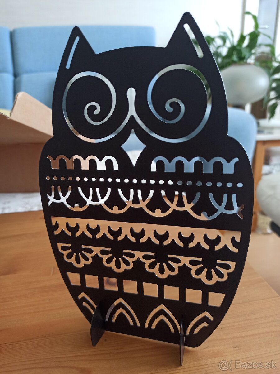 Kovový stojan na šperky sova, čierna