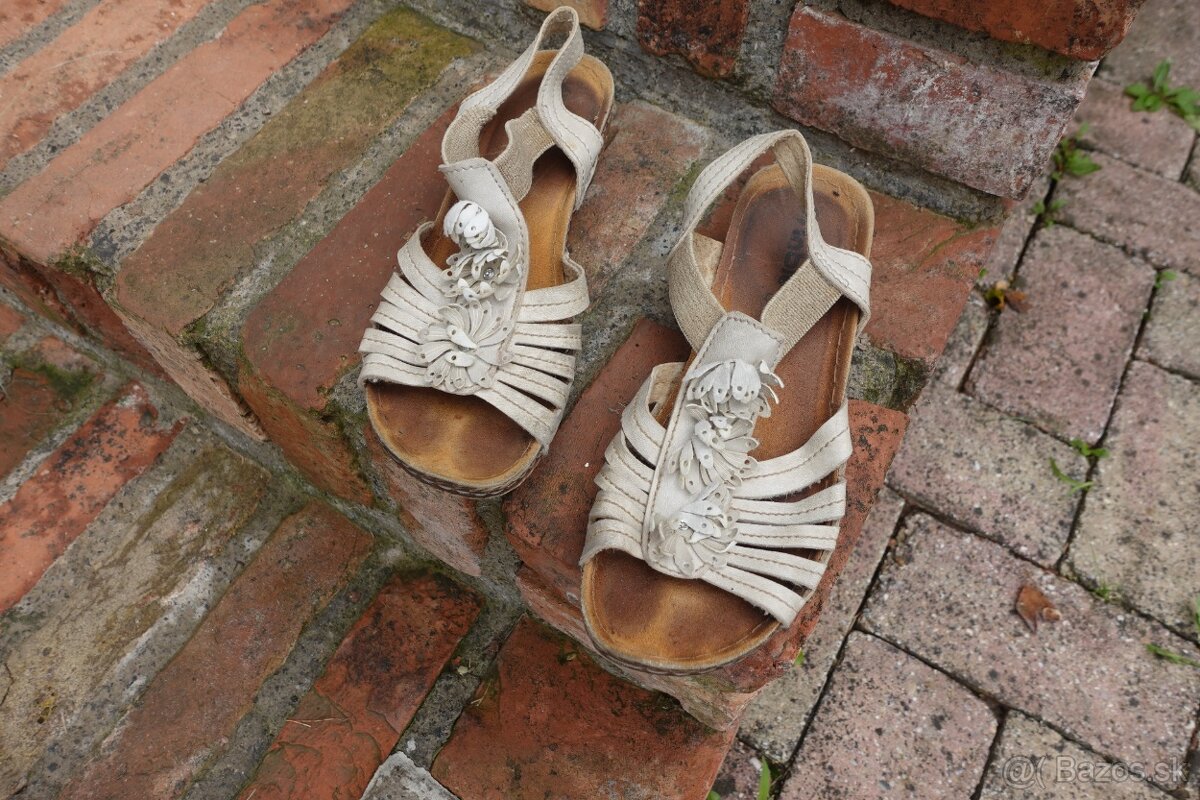 Predám dámske biele sandále s nízkym opätkom, veľkosť 38. Používané, ale v dobrom stave, ideálne na leto alebo každodenné nosenie.