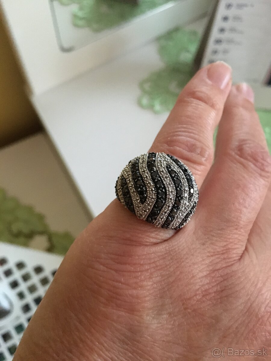 Úplne nový dámsky prsteň z ródiovaného striebra s čiernobielymi zirkónmi, veľkosť 54