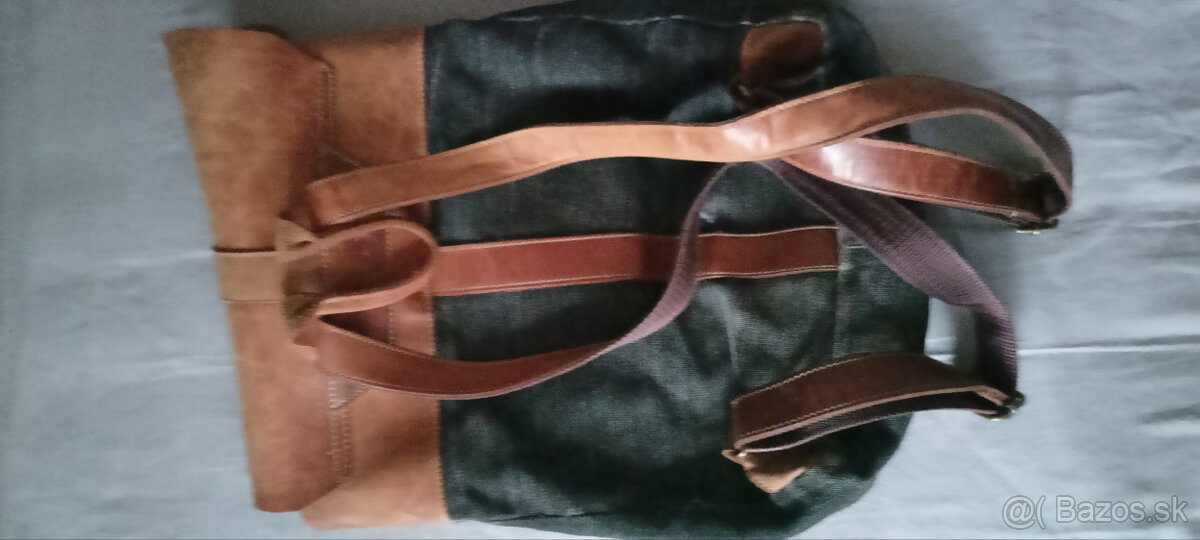Batoh zn. Monarch. Kúpený v Maďarsku. Kombinácia kože a textílie. Vyblednutý vzhľad textilnej časti je od Novotný, nie nosením. Má veľké vnútorné vrecko, jedno malé a ešte jedno väčšie, ktoré je na zips, ale ten sa žiaľ odtrhol. Cena s doporučenou poštou.
