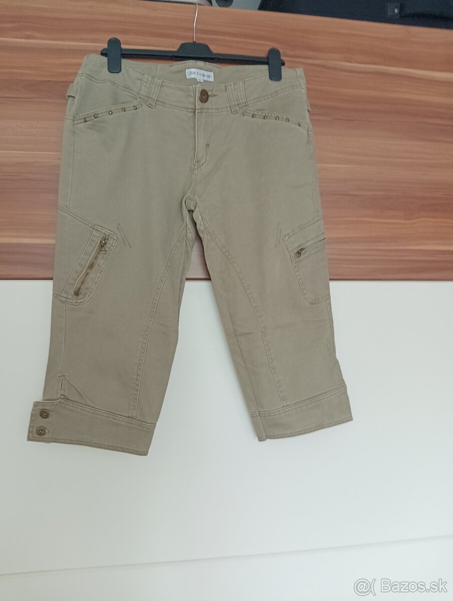 Predám veľmi málo nosené nohavice: 1) khaki džínsového strihu veľ. 42, pás 2x 46, cena 3,00 eurá. 2) modré-denim, pás 2x39, cena 2,00 eurá. 3) letné, čierno-biele bavlnené, pás 2x43, vonkajšia dĺžka 72 cm, cena 2,00 eurá. 4) sivé F&F veľ. 40, pás 2x43, vonkajšia dĺžka 84 cm, cena 1,00 eur. Poštovné podľa Sadzobníka Slovenskej pošty. Pozri aj moje ďalšie inzeráty.