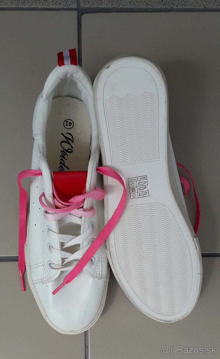 Predám nenosené dámske biele tenisky. Veľkosť 41. Cena 7 eur.