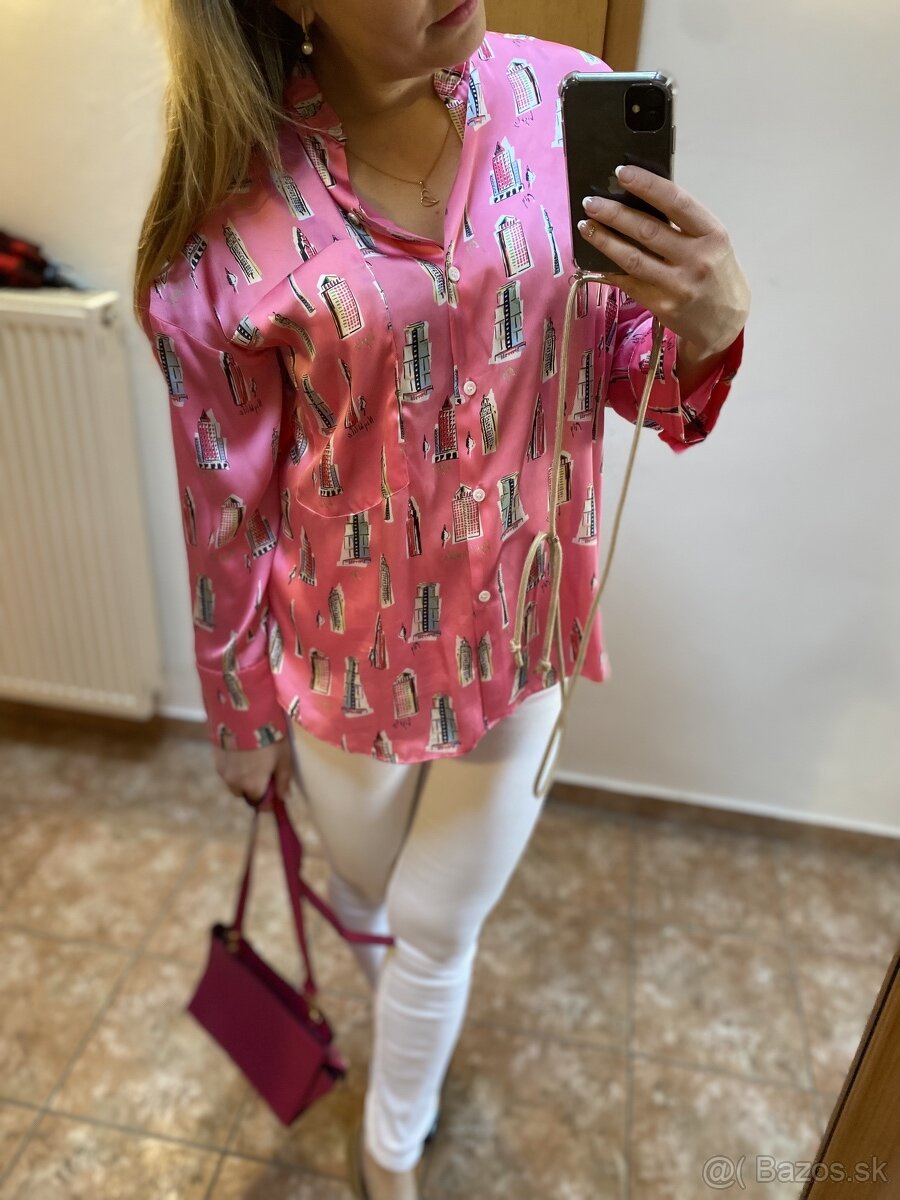 Vzorovana Zara bluzka - [31.1. 2026]Predam vzorovanu bluzku znacky Zara, velkost je XS, top stav. Stitok s materialom som, zial, odstrihla, no povedala by som, ze je to viskoza. Bluzka ma ozdobeny stojacik, stuhu, ktoru je mozne pri krku uviazat, rukavy sa zapinaju na gombiky. V pripade zaujmu premeriam.