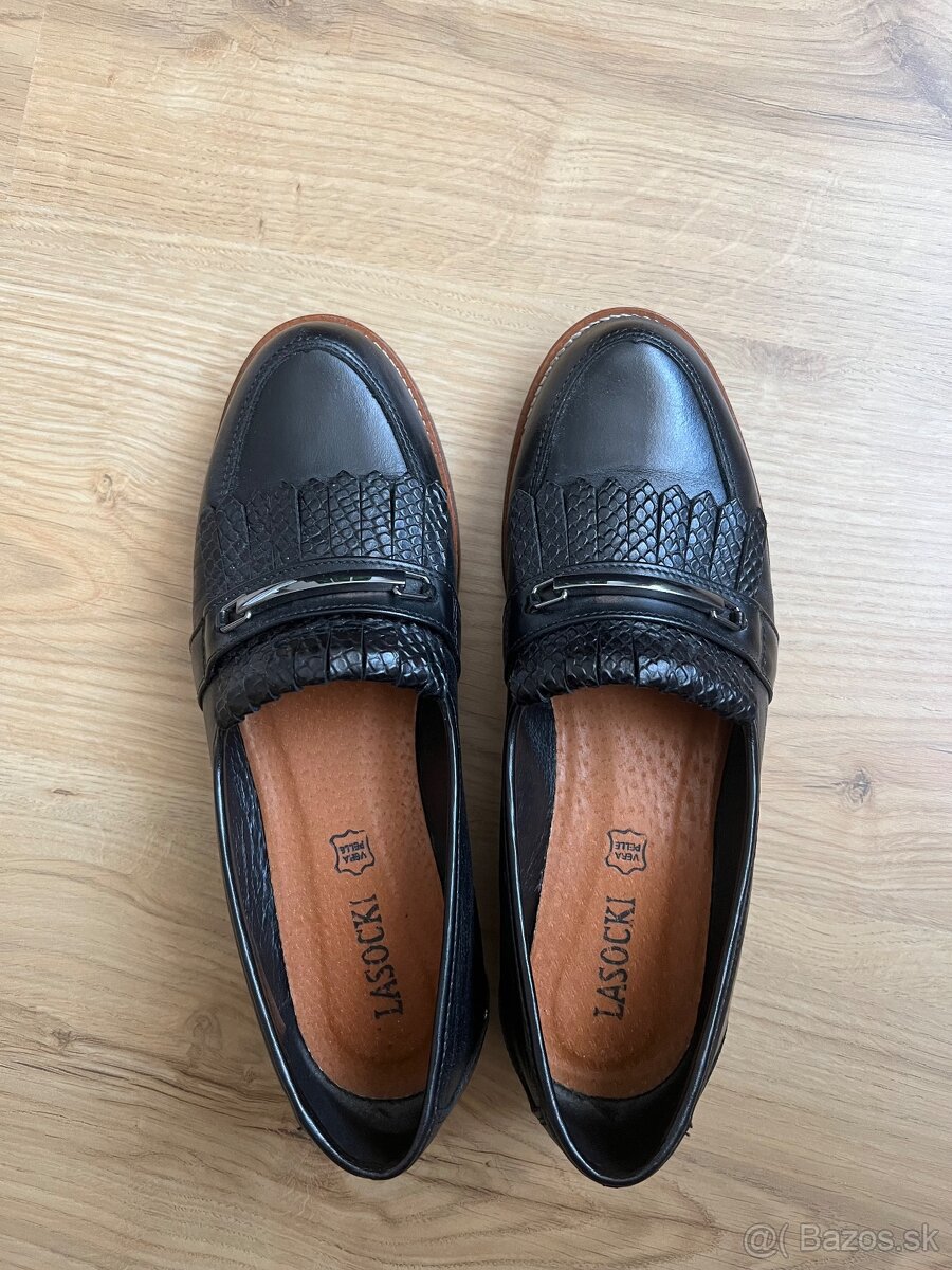 Predám tieto pár krát obuté čierne kožené mokasíny značky Lasocki, Sú v TOP stave.