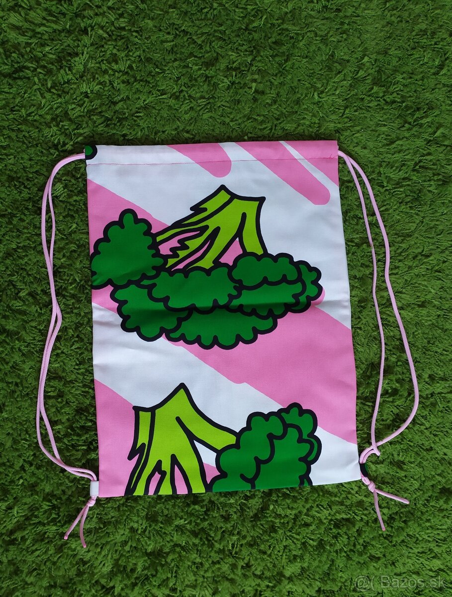 Vhodné aj pre dospelých, aj pre deti. Farby: biela, ružová, zelená. Vzor: brokolica, pruhy. Vhodné na výlety, ale aj ako vrecúško na prezuvky, na nákupy, ale aj bežné nosenie. 34x44cm. Šnúrky v pokoji (t.j. ako na foto) 50cm.