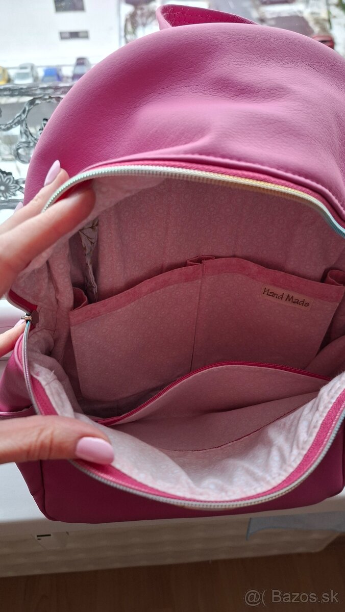 Predám nový dámsky koženkový batoh ružovej farby. Batoh je ručne šitý - hand made.