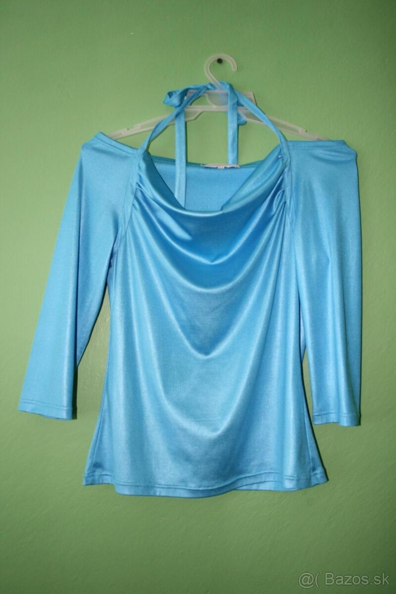 Predám nové, vo veľkosti S/M v krásnej farbe a prevedení s jemným leskom a viazaním okolo krku, 3/4 rukáv.