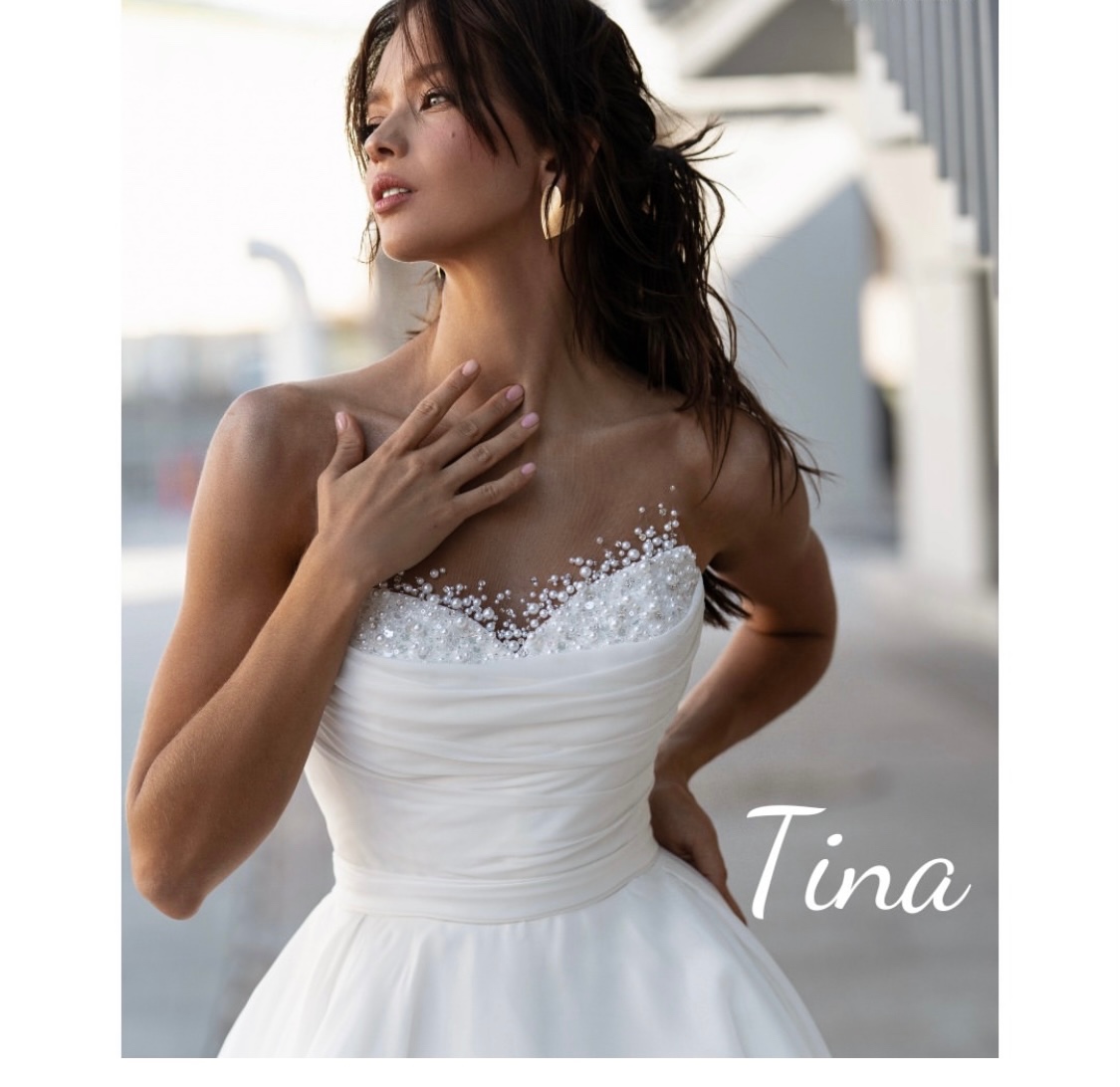 Pollardi - Meriann 2026 - [4.2. 2026]Svadobné šaty sú nové. Krásne sedia na postave. Odskúšané len v salóne. Veľ. 38-40. Dľžka pôvodná takže aj na vysokú nevestu. Majú osobitne rukavičky na gombíky.