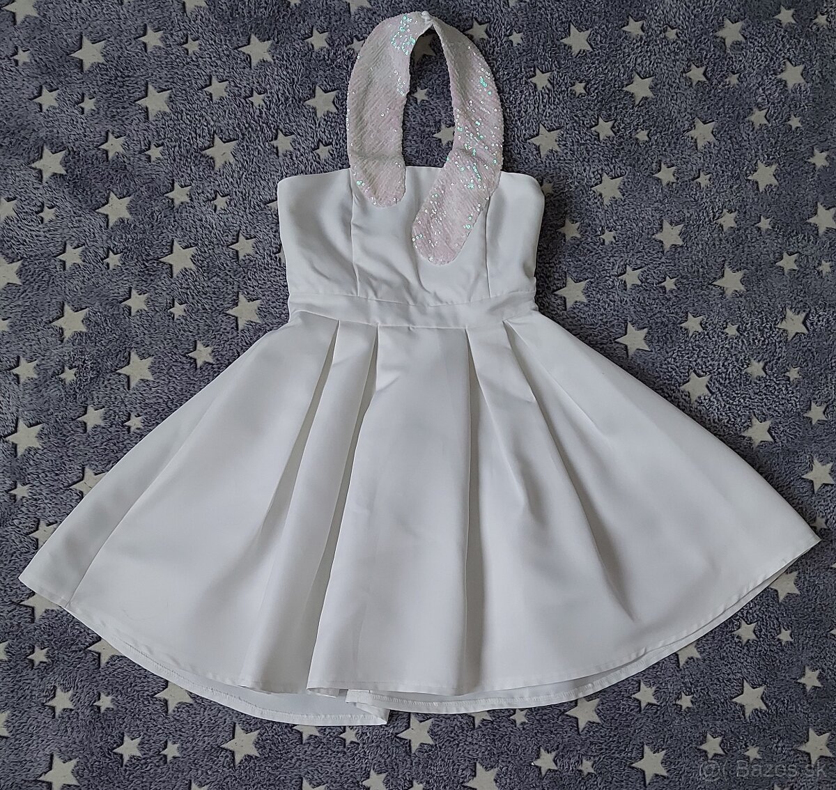 Predavam krasne a jedinecne spolocenske kratke saty vhodne aj na svadbu. Ja som ich mala v 5. mesiaci tehotenstva. Saty su z Ameriky a su jedinecne. NIe je tam uvedene cislo, vhodne pre stihlejsie postavy.