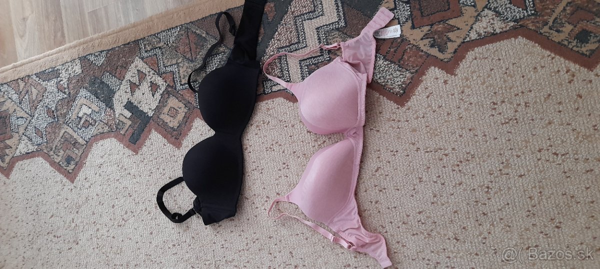 podprsenky ružová 85D málo nosená 2e, čierna nová nenosená esmara 85C cena 5e a nohavice na cvičenie HOT SHAPERS velkost xl cena 7 e