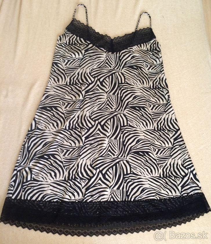 Predám košieľku z jemného materiálu s čiernou čipkou. Veľkosť cca M: šírka cez prsia 84 cm, dĺžka od výstrihu po spodný okraj 65 cm. Nová, nenosená (nevhodný darček).