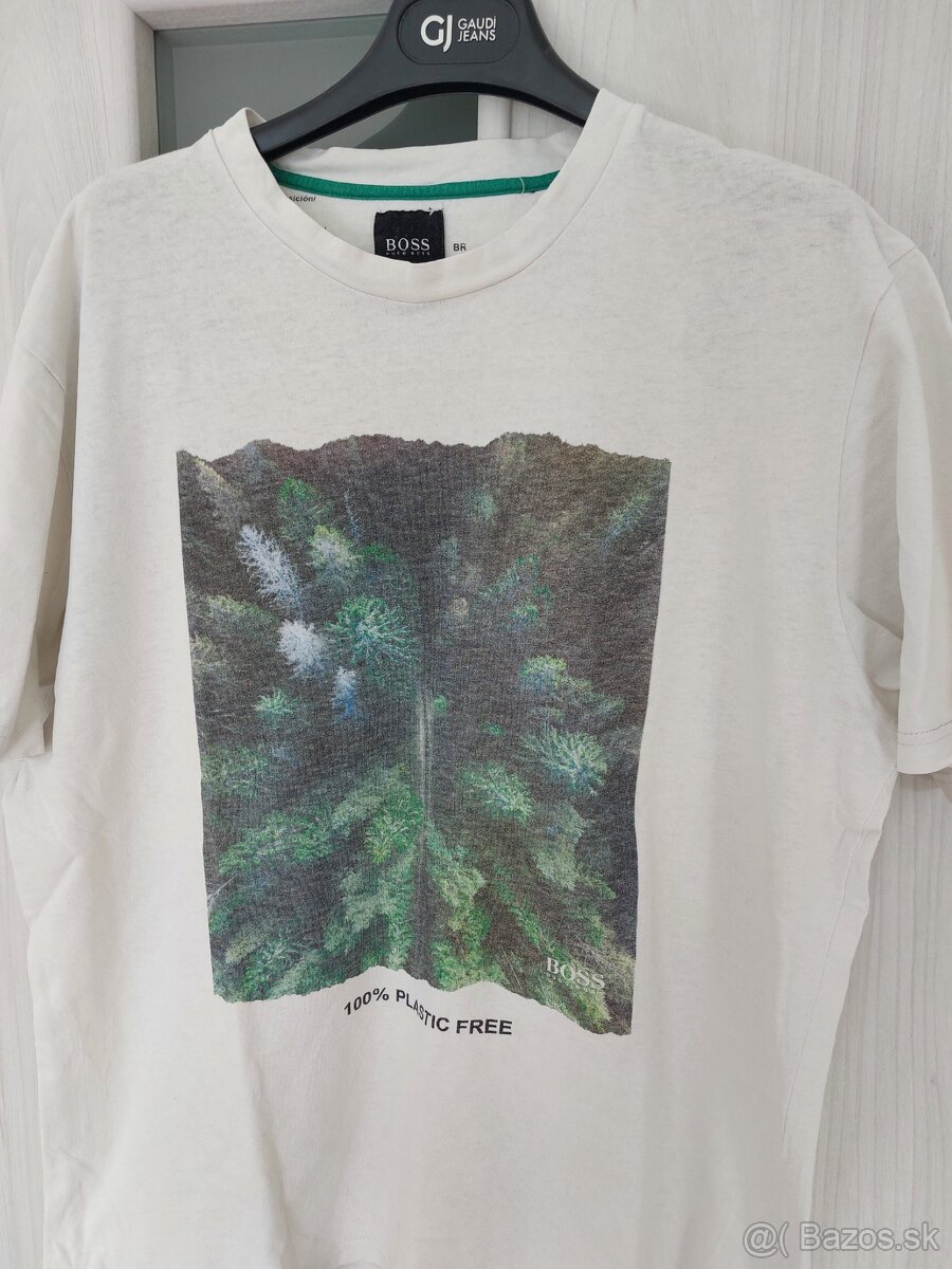 Pánske tričko Hugo Boss v. XXL - [17.1. 2026]Nosené, na farbe už mierne vidno nosenie a pranie, malinká dieročka na prednom diely (viď detail). 100% bavlna, Veľ. XXL, RO: š 2 x 57, dl. 71 cm. Váha 163 g.