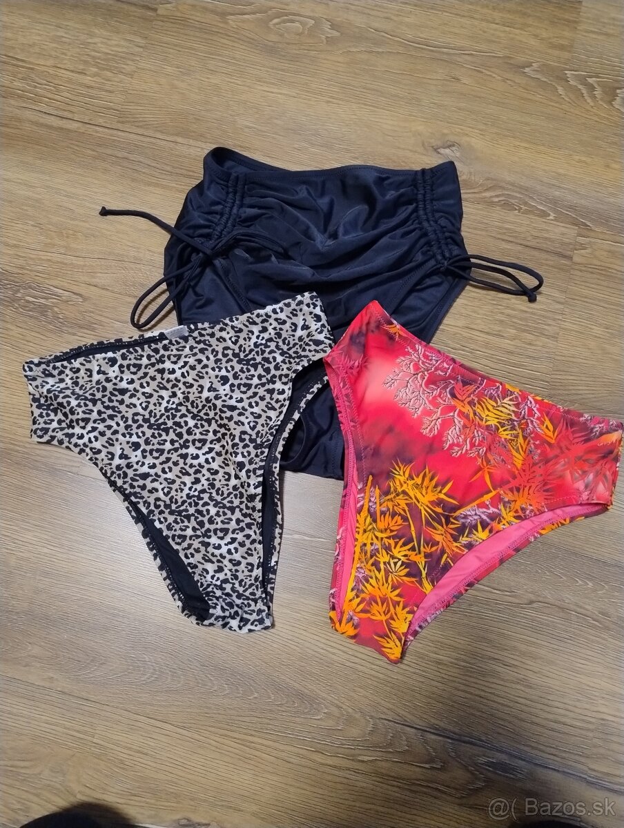 Predám plavkové nohavičky relleciga s vysokým pásom, čierne sa dajú sťahovať na boku, veľkosť písaná S sadnú aj na menšie M mne sú veľké žiaľ.kus 7 eur.spolu cena 18 eur.