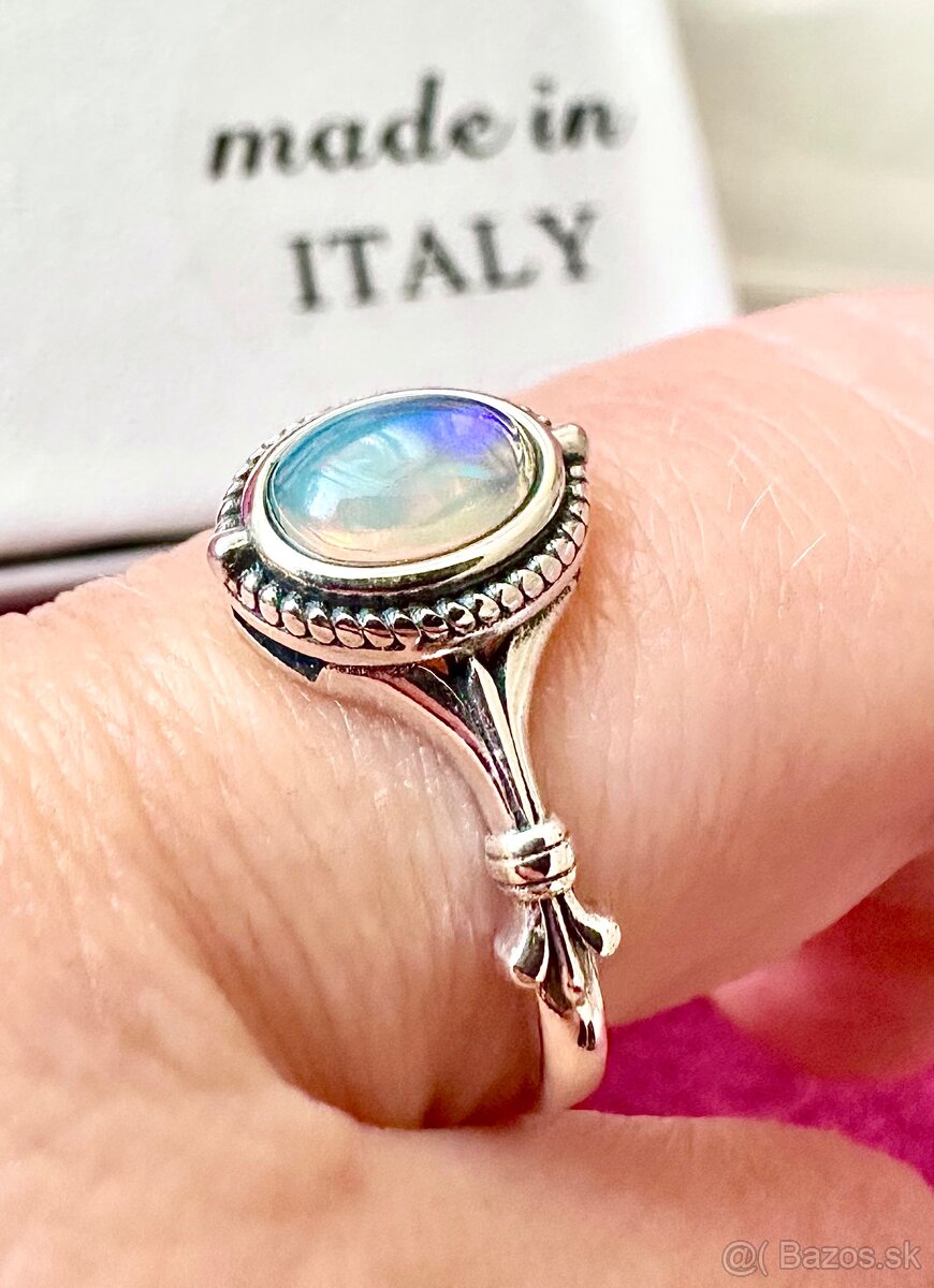 Predám krásny nový strieborný prsteň vo vintage štýle s pravým opálom. Prsteň má punc striebra a nastaviteľnú veľkosť. K prstienku je krabička a čistiaca handrička na striebro.