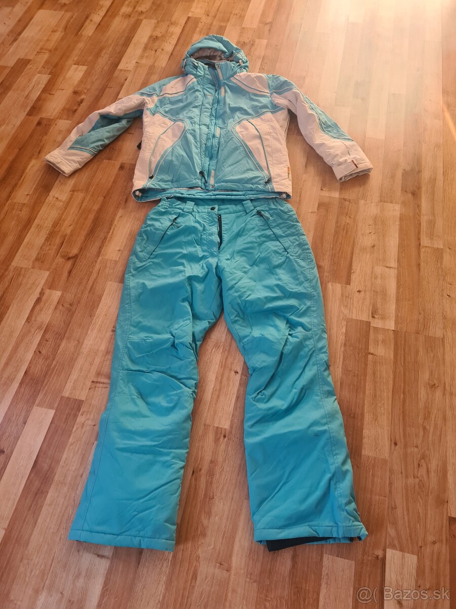 Predán Lyžiarsku súpravu značka North Finder , pozostáva z nohavíc a vetrovky , velkosť M , nepremokavý materiál.Bunda je na zips , má kapucňu , vačky bočné , vnútorné , na rukávoch aj otváratelné zipsy pre vetranie . V páse sťahujúci pás . Celková dĺžka 70 cm , šírka od pazuchami aj v bokoch 55 cm x 2 . Gate na zisps ( pozor je pokazený ) a na háčik , v zadu vrecko aj bočné . Tiež nepremokavé spodok na zips klasicky . Pekná azúrová farba s bielymi aplikáciami , vo velmi zachovalom stave .