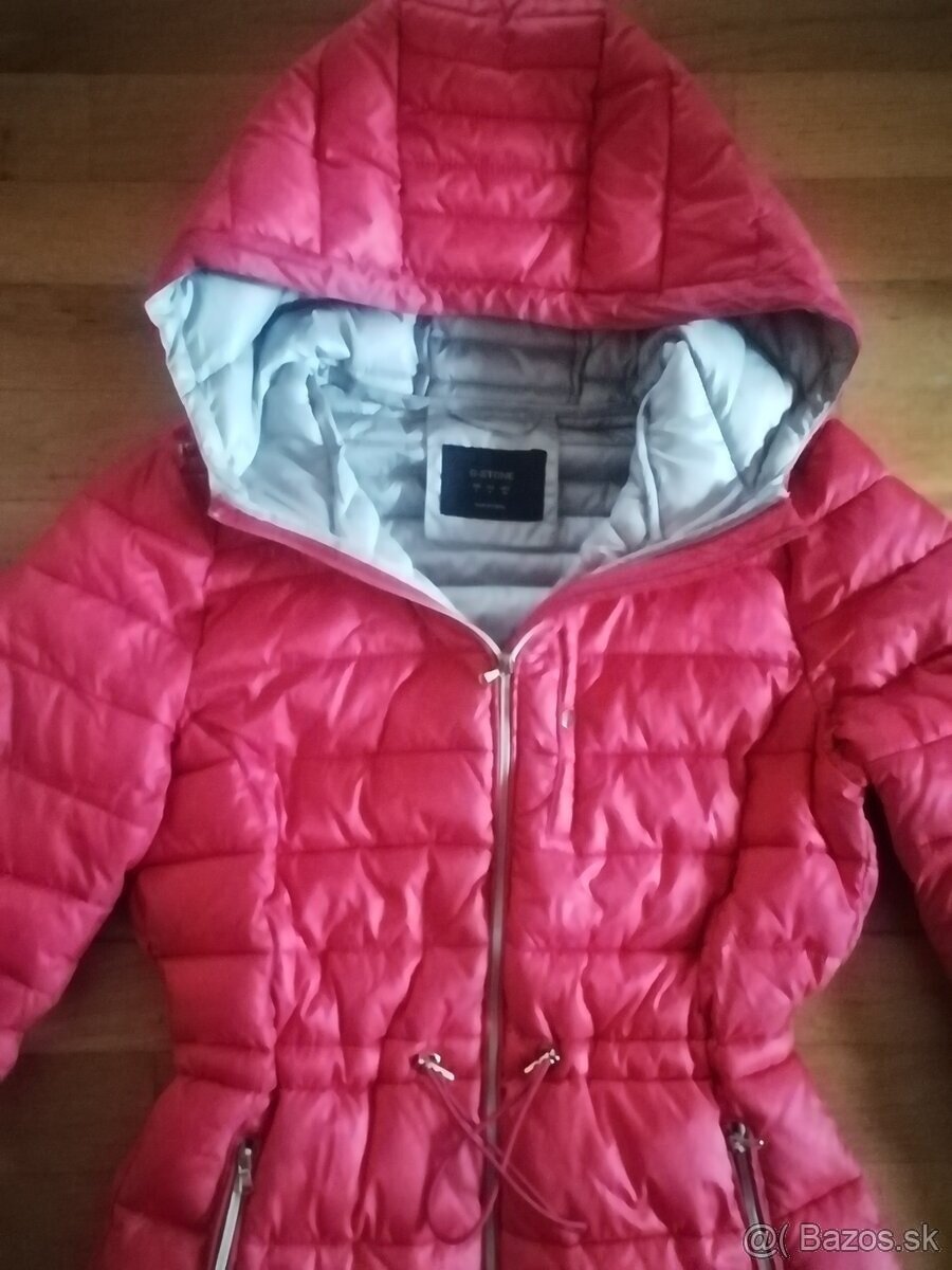 Cervena bunda na prechodne obdobie, zateplena, v pase sa da stiahnut,
