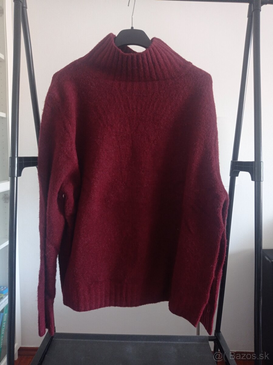 Predám nový sveter s rolákovym stojacikom, burgundy farba, teplý hrejivý materiál, veľmi mäkkulinký a príjemný na telo, Uni