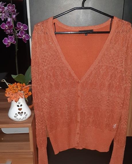 Sveter, velkost 44, nenoseny. Krasna tehlovooranzova s trblietavou nitou.