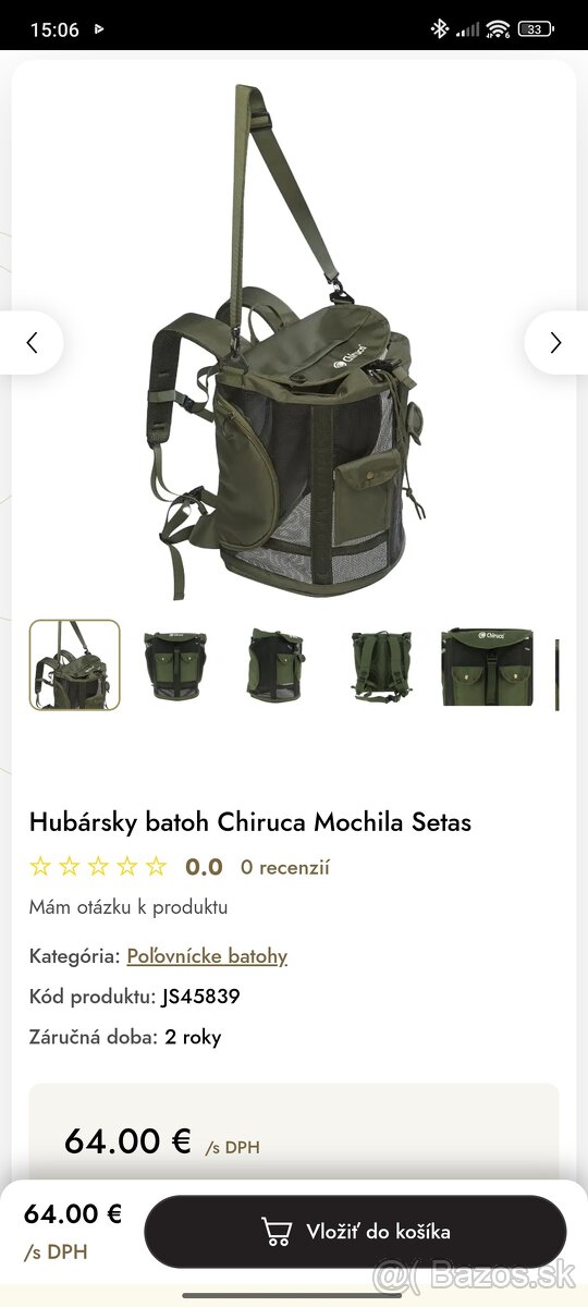 Dobrý deň, predám nový nepoužívaný batoh, ešte s originál vysačkou určený na huby (ale fantázií sa medze nekladú).