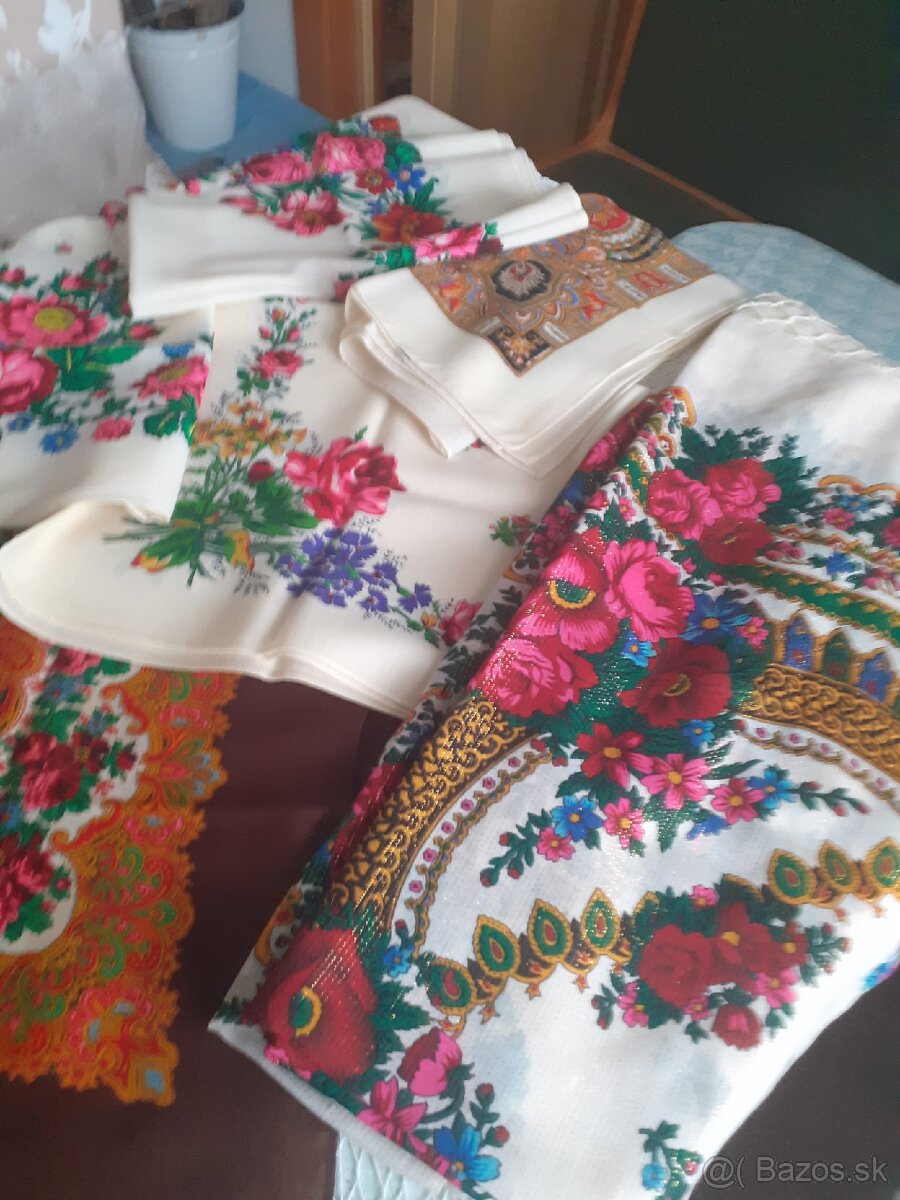 Kašmírové šatky sú veľmi málo používané. Jedna je veľká, vhodná ku kroju namiesto vlniačika v teplejšom období.Je dovezená z Ameriky pretkávaná zlatými niťami