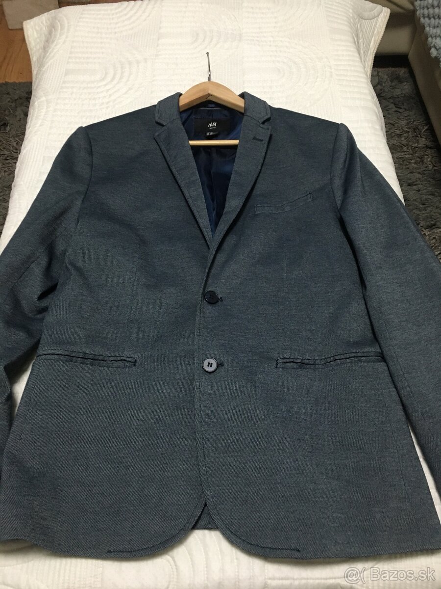 Predám pánske sako veľkosť M, sivomodrej farby, vôbec nenosené. Vzadu na laketníkoch je našitá látka.