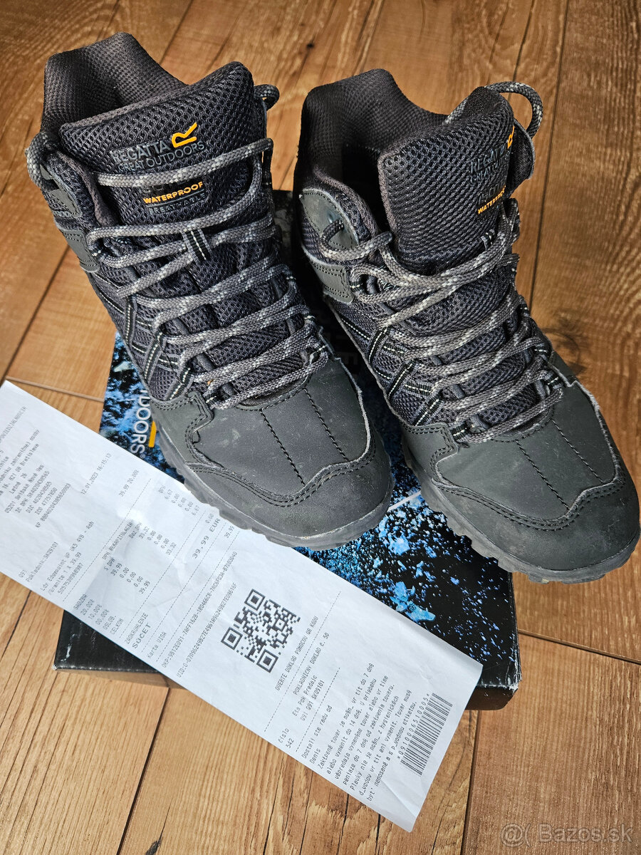 Predám turistické topánky Regatta LADY Edgepoint MID WP vo veľkosti 38. Topánky boli kupované v januári 2023. Sú ako nové, boli obuté asi 5-krát, následne sa do nich už nevošla synova noha.... Som priamo zo SNV, osobne viem doručiť na trase SNV-LE-PO-KE.