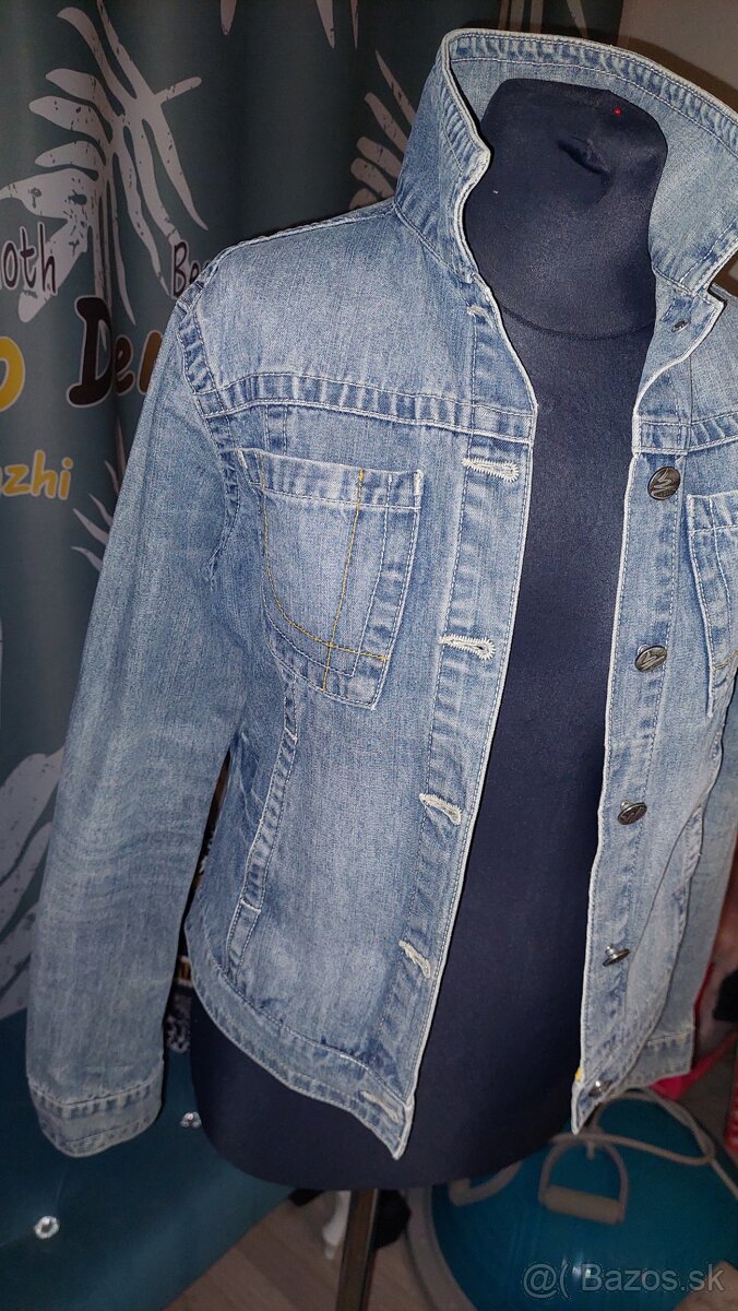 Riflova bunda - [26.1. 2026]Dobrý deň, predám krásnu riflovu bundičku. Veľkosť xs sadne aj na s veľkosť.