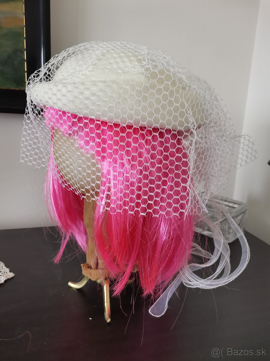 Ponúkam dámsky biely elegantný šmrncovný lodičkový klobúčik so sieťovaným závojom, ako na foto.