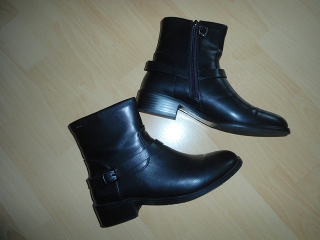 Prechodné čižmy - [9.1. 2026]Ponúkam na predaj čierne kožené dámske čižmy,značka TAMARIS. Veľkosť 39. Šírka sáry je 36 cm, šírka v členku asi 13 cm.