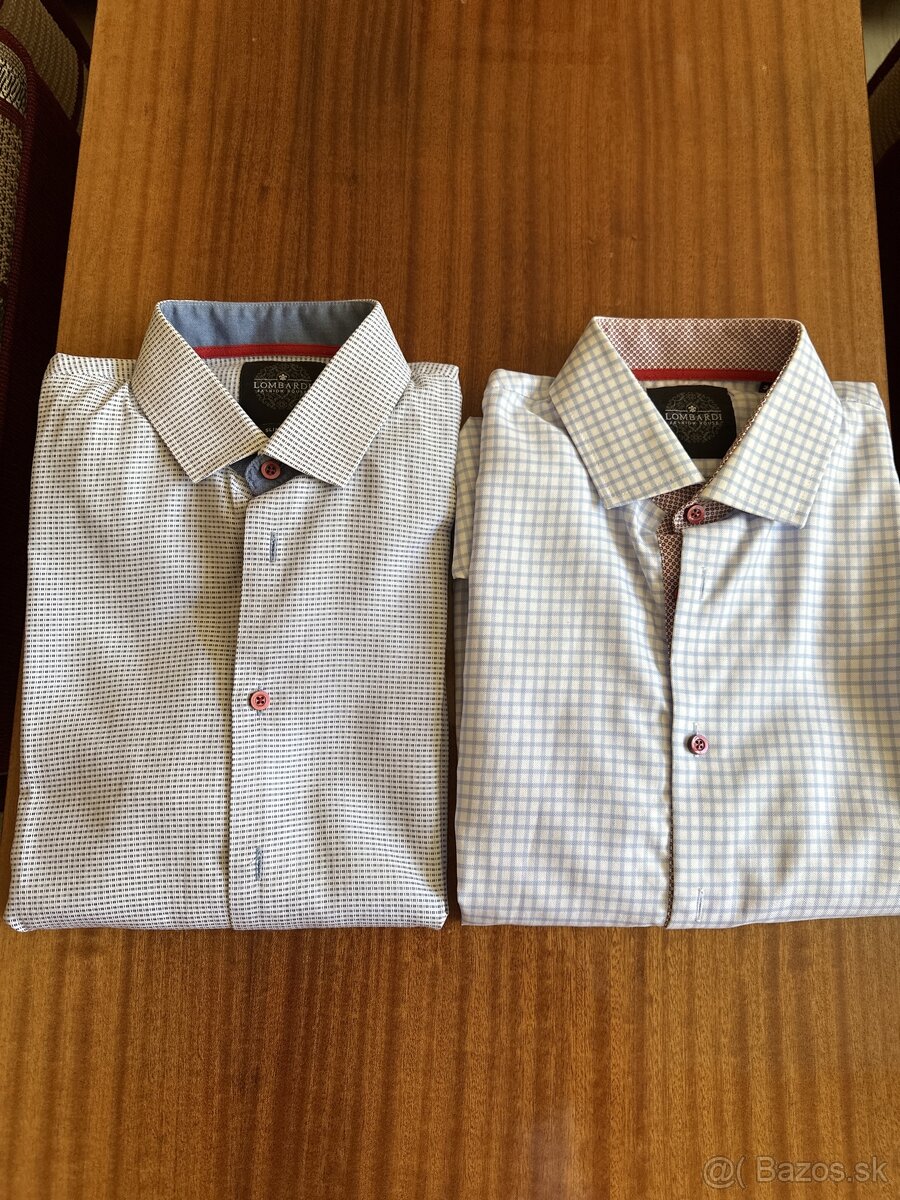 Predśm 2 ks pánske košele zn. Lombardi, veľkosť M (38), materiál 100% bavlna, strih slim fit. Košele sú nosené minimálne, sú nepoškodené, ako nové. Cena za 1 ks je 10,-€, v prípade zakúpenia oboch je cena 15,-€ za obidve spolu. Zašlem aj na dobierku cez Packeta alebo poštou, cena sa navýši o poštovné.