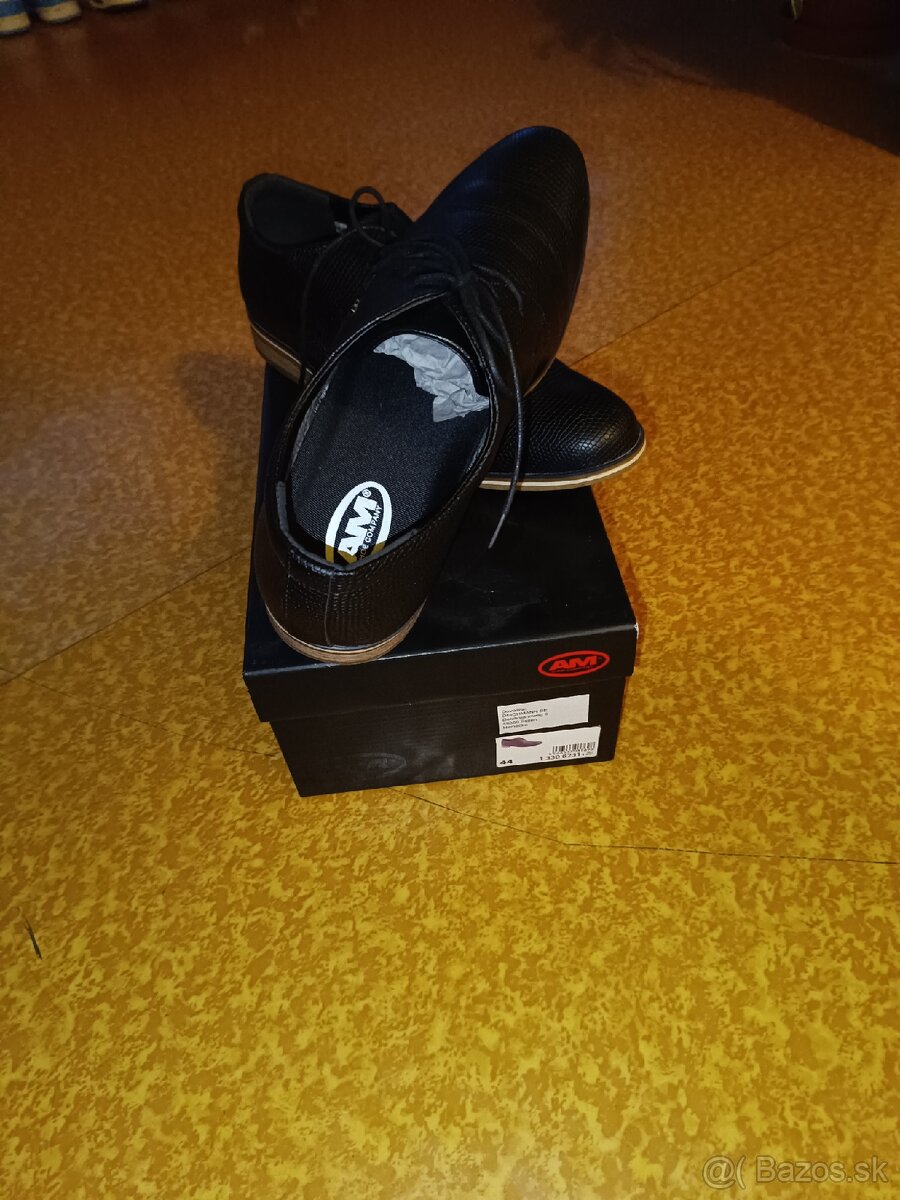 Pánske čierne spoločenské topánky 43 - [22.1. 2026]Predám pánske spoločenské čierne topánky. Veľkosť č 43. Topánky boli 2x obuté. Na špičke trochu šúchnnuté viď foto.