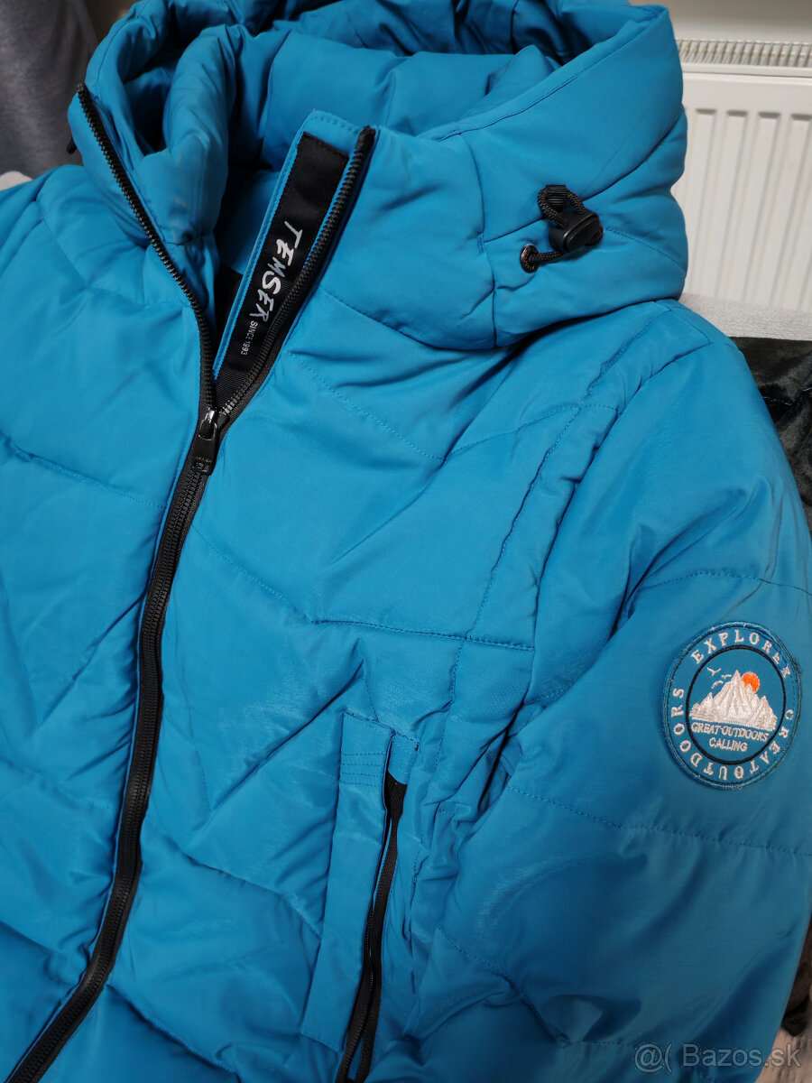 Predám takmer novú /len dvakrát oblečenú/ dámsku zimnú prešívanú bundu krásnej modrej farby. Veľkosť sedí na č. 46/48. Rozmery: dĺžka- 88 cm, cez prsia – 124 cm, cez boky- 128 cm, dĺžka rukáva 68 cm. Cena 45,-€ + poštovné. Kontakt tel., resp. sms.