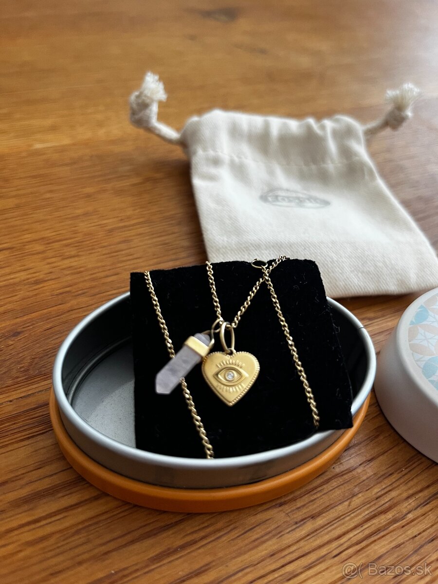 Fossil nový náhrdelník s príveskom Tento náhrdelník s príveskom obsahuje prívesky z ružového kremeňa a zlata z nehrdzavejúcej ocele. je nový PC bola 65€