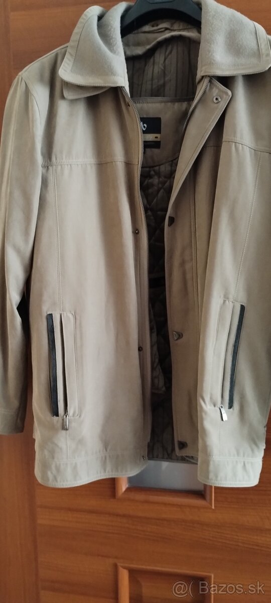 Predám pánsku dlhšiu bundu kabát, ako nový. Zapínanie na gombíky + na zips. Vnútri teplá vložka /nepoužitá/ vyberateľná a zapínateľná na zips. Dva goliere, jeden prídavný sa dá odopnúť. Rukáv a spodok bundy sa dá zmenšiť zväčšiť zapnutím na cvok. Vrecká spredu 2+2. Dlžka bundy 82cm, dl. rukáv 65cm od pleca, Zadná šírka pod rukávmi 60cm. Kont. mailom