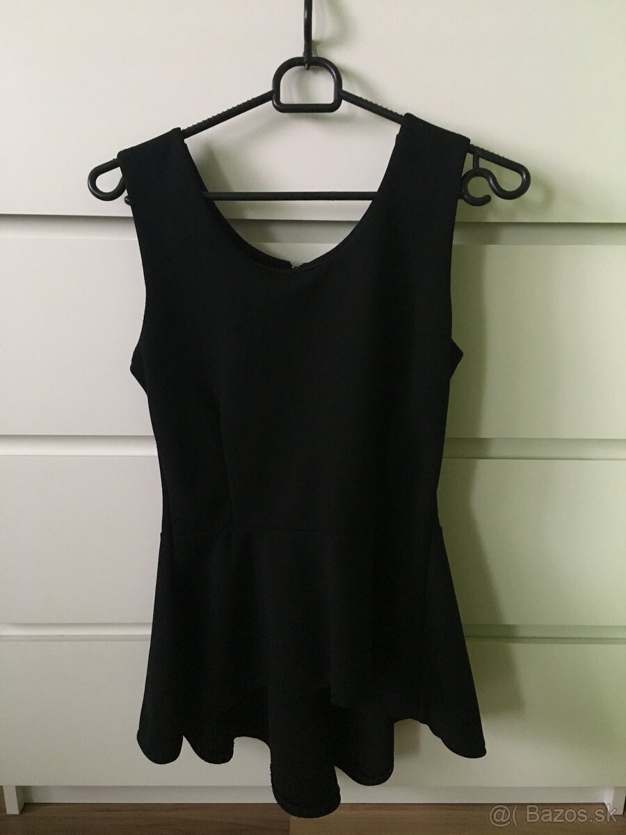 Predám čierny peplum TOP, "áčkového" typu. Veľkosť sadne na S/M. Vzadu je predlžený a zapína sa na zips. Je ako nový, bez poškodení. Cena 5€.V prípade záujmu ma kontaktujte na e-mail: oblecenie.bazar12@gmail.com