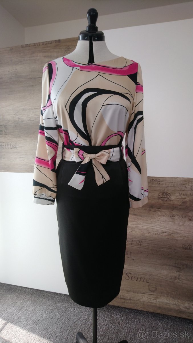 Predám úplne nové blúzku a sukňu, je to tak originál komplet z veľmi kvalitných materiálov!!! Nenosené, nové, bez poškodení, top stav. Sukňa je podšita a má dva opasky. Jeden čierny z materiálu ako sukňa, druhý z materiálu ako blúzka. Rozmery : 92,79,100. Cena je 30 €. Pozri si aj ďalšie moje inzeráty. Ďakujem