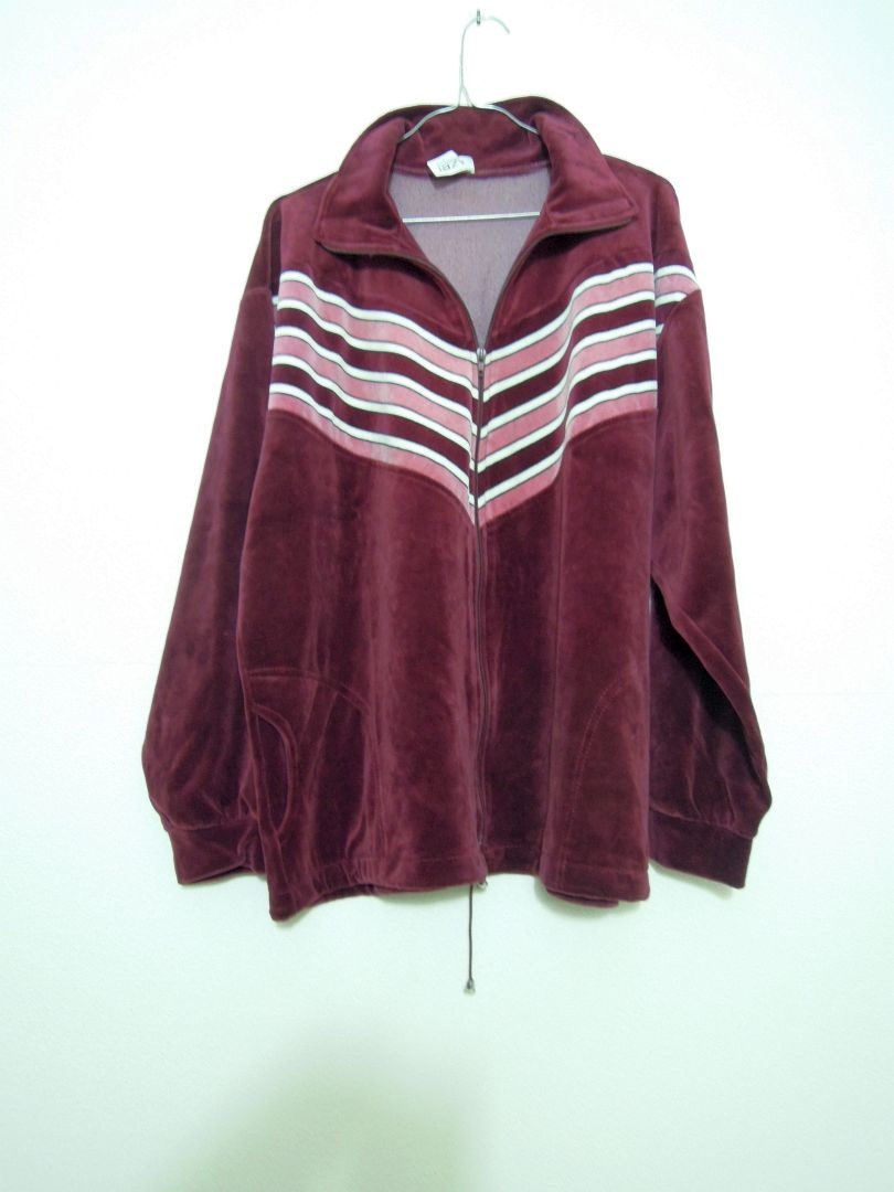 Predám dámsku domácu zamatovú súpravu: bunda+nohavice, bordovej farby, veľ.XXXXL.