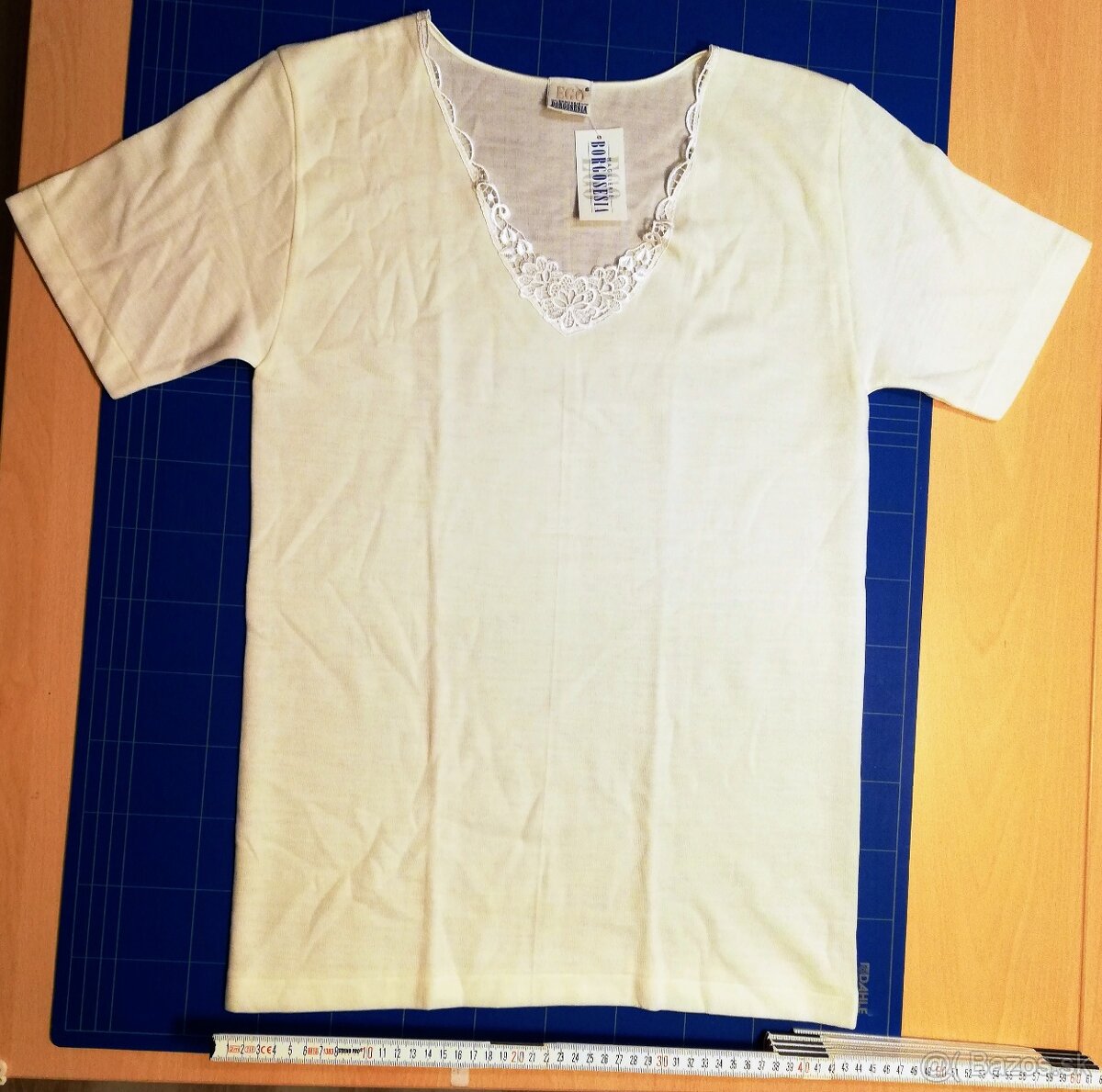 Krásne nové dámske / dievčenské vlnené tričko s nežnou krajkou (jemné ako merino).