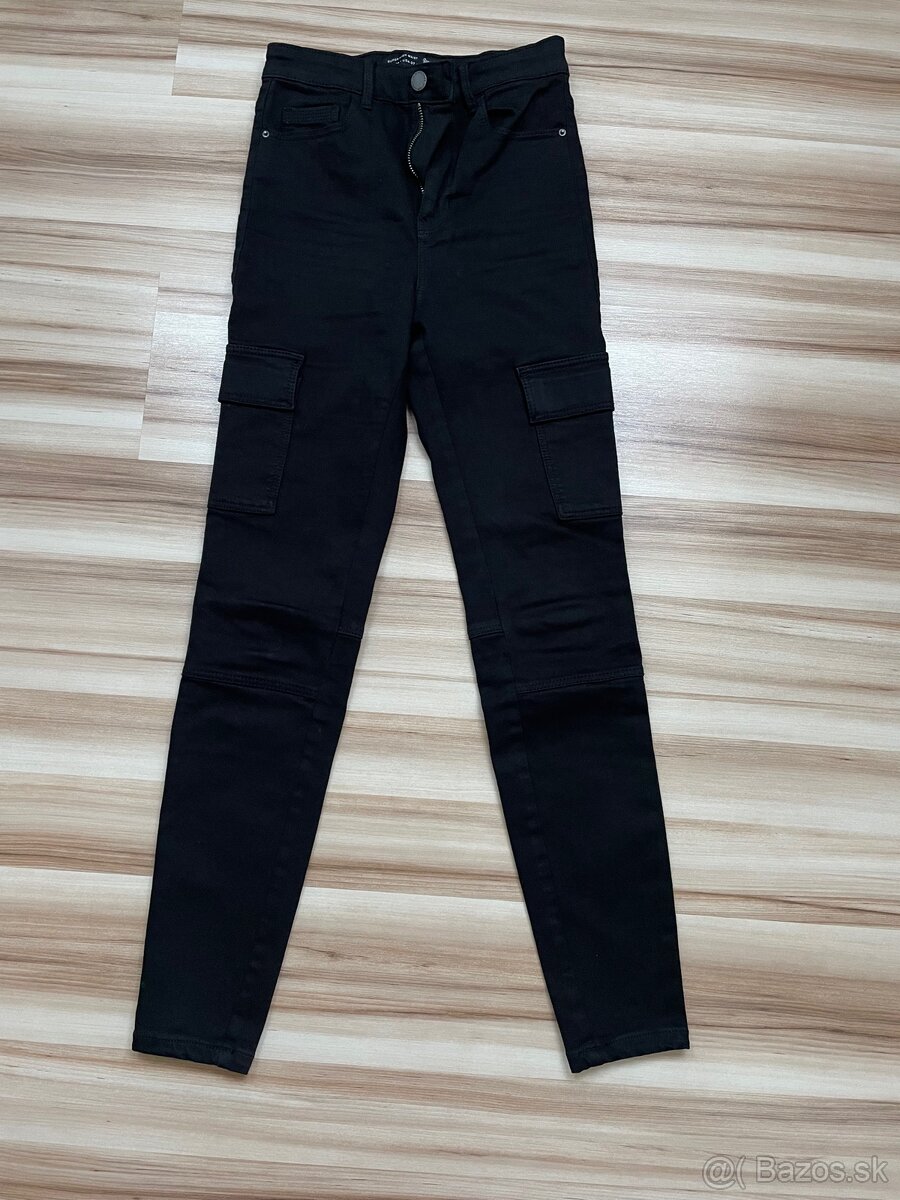 Dámske čierne rifle veľkosť 32, zn. Mohito - [4.2. 2026]Sú elastické a majú vysoký pás. 1x oblečené.