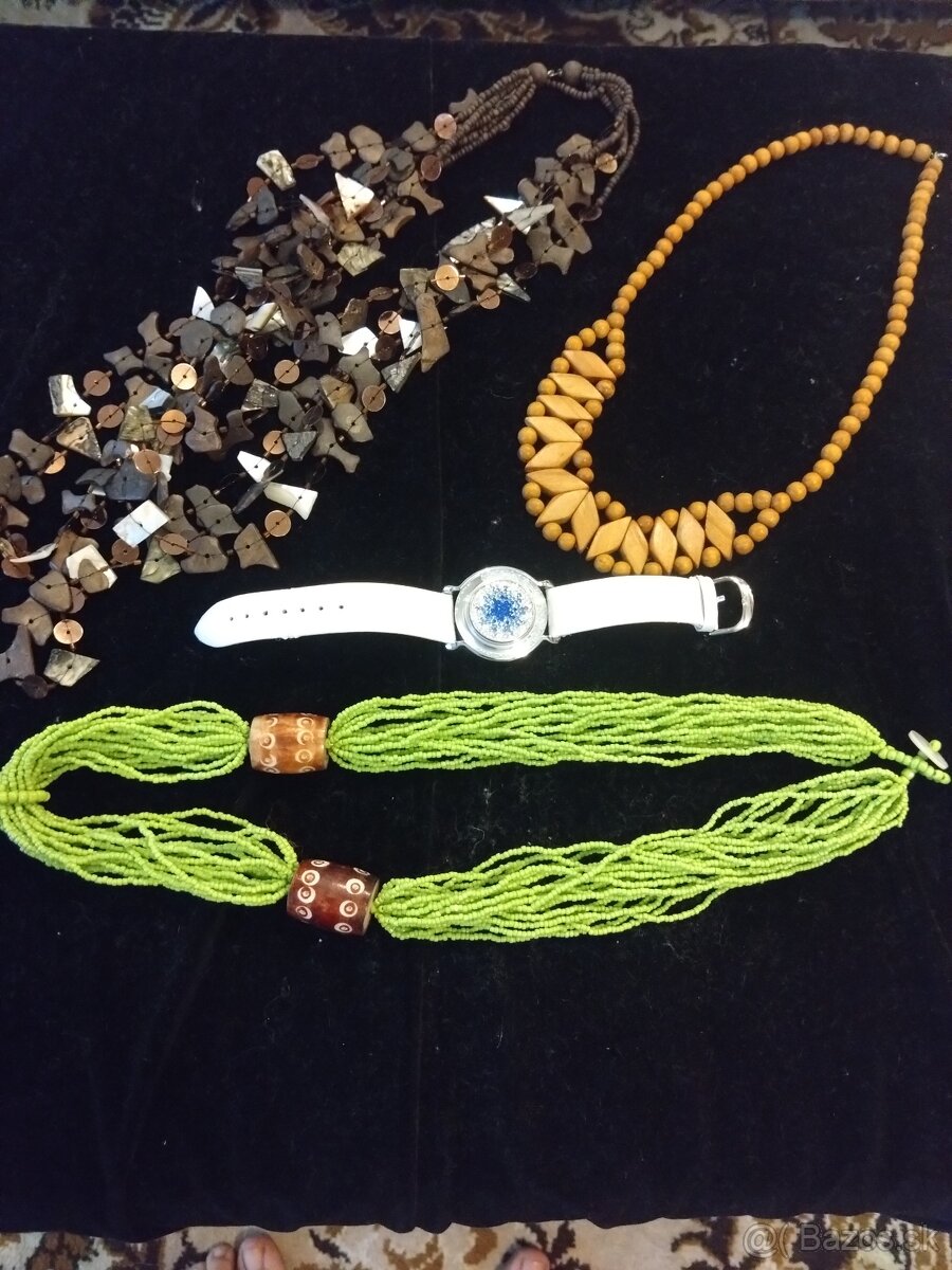 Dobrý deň, v ponuke šperky, málo nosené, veľmi dobrý stav, náhrdelníky 2€/1ks, hodinkový šperk s kamienkami, nie sú to hodinky cena 10€. Spolu 11€. Tmavo hnedý predaný.