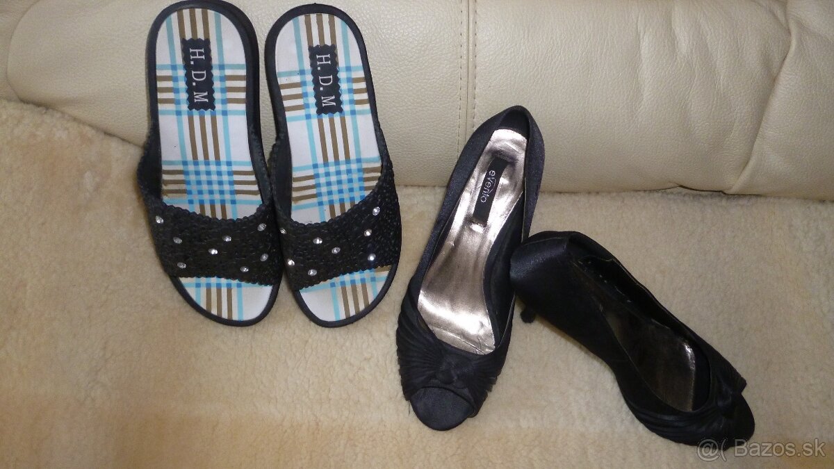 čierne šľapky č. 37, cena je 4€. Pri kupe spolu cena 6€ + poštovné (3,90€), uprednostňujem platbu na účet, email: sofe@centrum.sk,