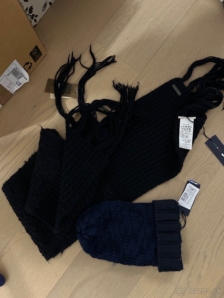 Gas , talianska zmačka, tmavomodrý set - čiapka a šál , dĺžka šálu 105 cmx 2, čiapka univerzálna veľkosť , mám k nim aj visačky , cena za set 20€+ poštovné, možný odber v ba, nevhodný darček