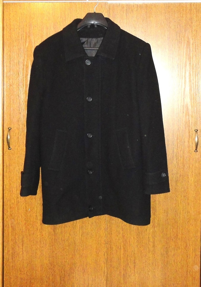 Vlnený kabát, dĺžka 85cm, šírka 64cm, rukáv 67cm, teplý, na zips