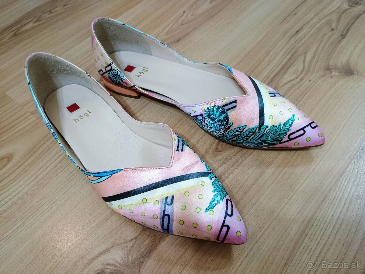 Nádherné vychádzkové lodičky na nízkom podpätku značky Hõgl. Jedenkrát obuté vonku, inak nenosené. Dátum nákupu marec 2024 (záruka v obchode Baťa trvá, pri kúpe dodám aj pôvodnú faktúru). Veľkosť 38. Dodám v pôvodnej krabici.