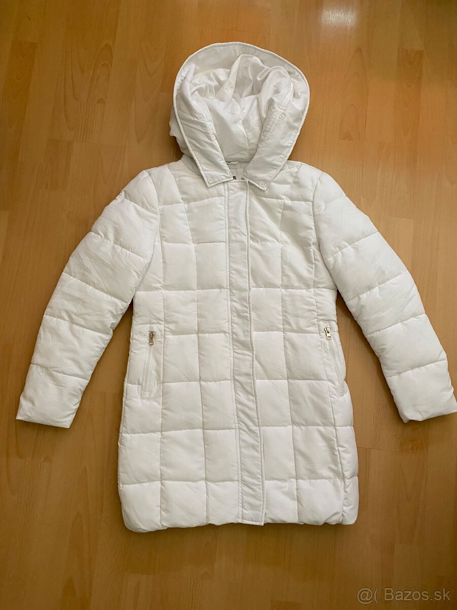 Nenosené, uložené v skrini, bez poškodenia. Stav veľmi dobrý lebo chýba umelá kožušina na kapucni. Zapínanie na zips a patentky funkčné. Kapucňa sa neodopína. Na štítku veľkosť M. Rozmery a zloženie na foto. Celková dĺžka od ramena nadol 80 cm. Vatovaná bunda. Pred nákupom sa odmerajte.
