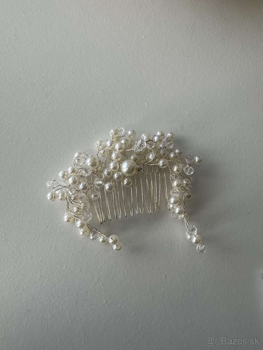 Predám nádhernú perličkovú ozdobu do vlasov s hrebienkom. Použitá iba raz na svadbu. Dĺžka ozdoby je cca 10cm.