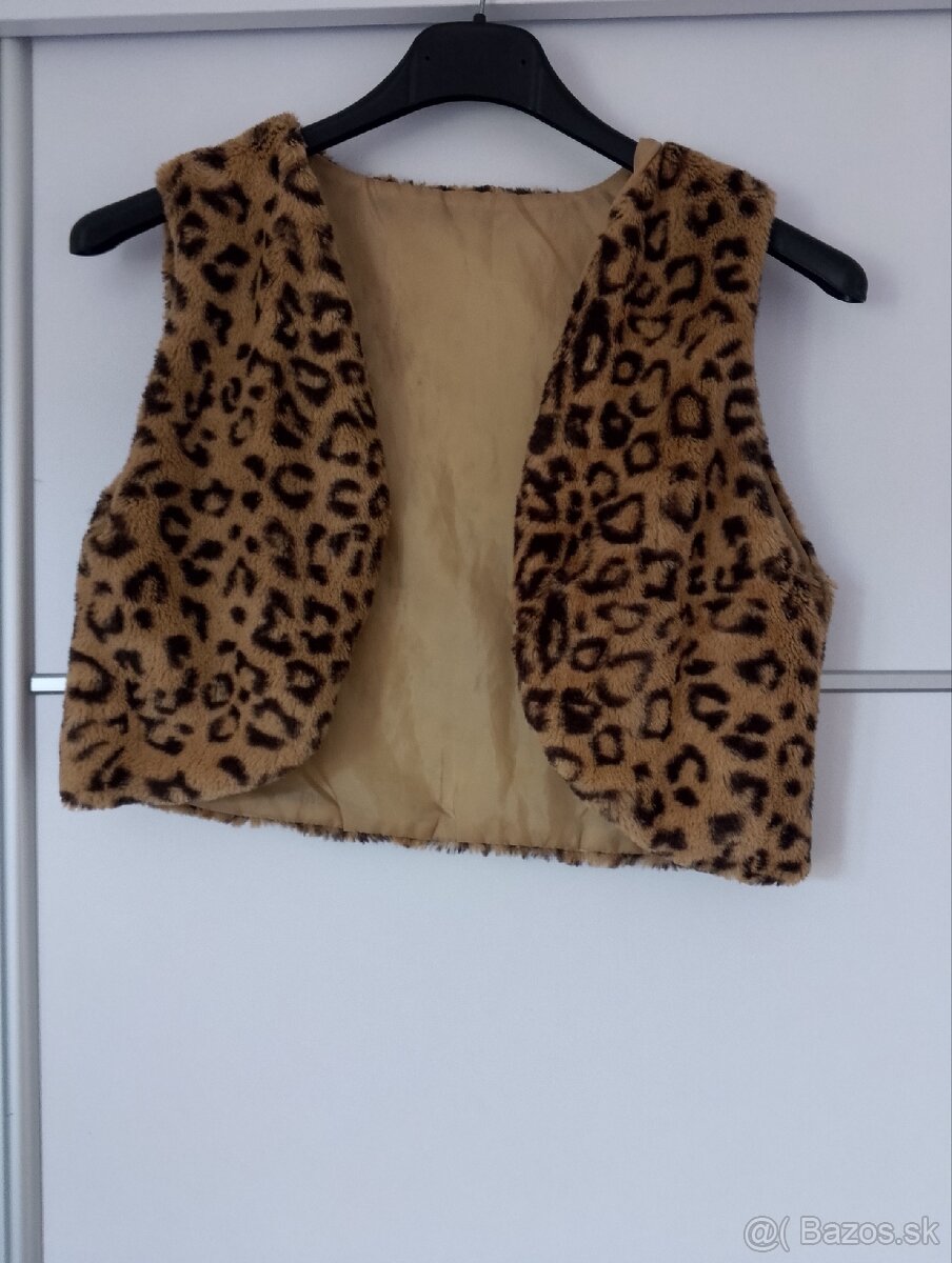 Dievčenská vesta s kožušinkou s leopardím vzorom. Veľkosť 140