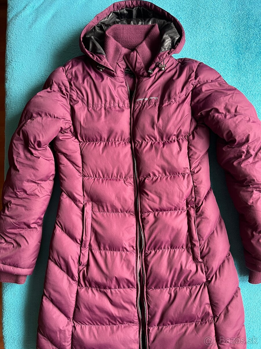 lo nosená, Kvalitná, hrejivá , tvaruje postavu, rukáv s manžetou, odnímateľná kapucňa, profesionálne vyčistená -štítok ponechaný, dĺžka 100cm, rukáv 63cm, prsia 50cm, pás 45cm, boky 56cm, spodok 62cm. Reálna farba na prvých fotkách fialová . Kúpna cena 190€.